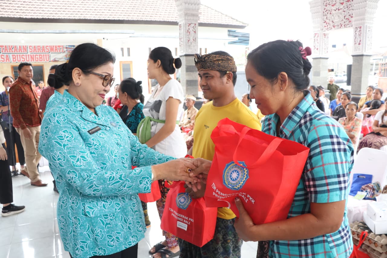 Ajakan tersebut disampaikan saat kegiatan Aksi Sosial TP PKK Provinsi Bali bertajuk “Bergerak dan Berbagi” yang digelar di tiga desa di Kabupaten Buleleng, yakni Desa Pengulon, Kecamatan Gerokgak; Desa Busungbiu, Kecamatan Busungbiu; serta Desa Gunung Sari, Kecamatan Seririt, pada Jumat (6/3).