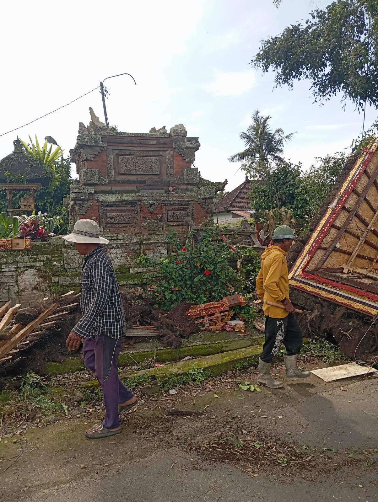 BANGLI, Breaking-news.co.id | Musim hujan yang belum berakhir kian menambah panjang deretan pohon tumbang di Kabupaten Bangli. Bahkan akibat angin kencang menambah serius kerja BPBD dan tim di Bangli , Jumat (23/1/2026). Angin kencang memporandakan bangunan di sebuah pura di Bangbang, Tembuku, sehingga semakin besar kerugian material akibat bencana alam di daerah ini. Sedikitnya kerugian material akibat hancurnya bagian atas bangunan mencapai Rp. 100 juta. Untungnya tidak ada korban jiwa dari semua peristiwa tersebut. BPBD Bangli dan dari Pemprov Bali serta unsur TNI / Polri bahu membahu lakukan evakuasi material dampak bencana.