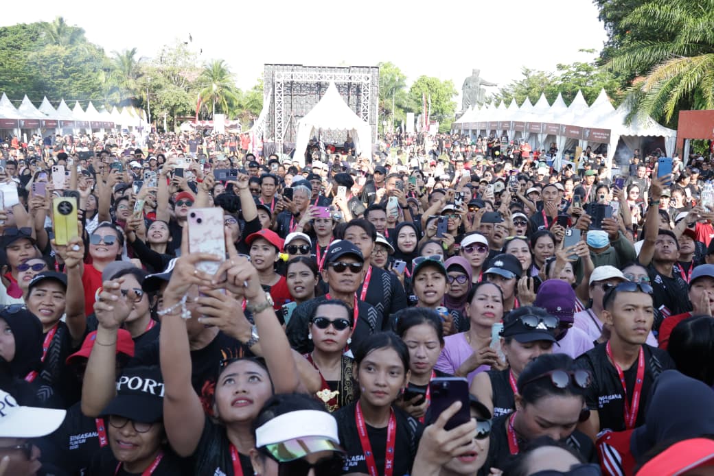 Sedangkan rangkaian acara pembukaan hari ini, di awali dengan pengibaran bendera start (flag off) oleh Bupati Sanjaya bersama Ny. Rai Wahyuni Sanjaya dan Unsur Forkopimda dan jajaran sebagai tanda dimulainya Singasana Fun Run.
