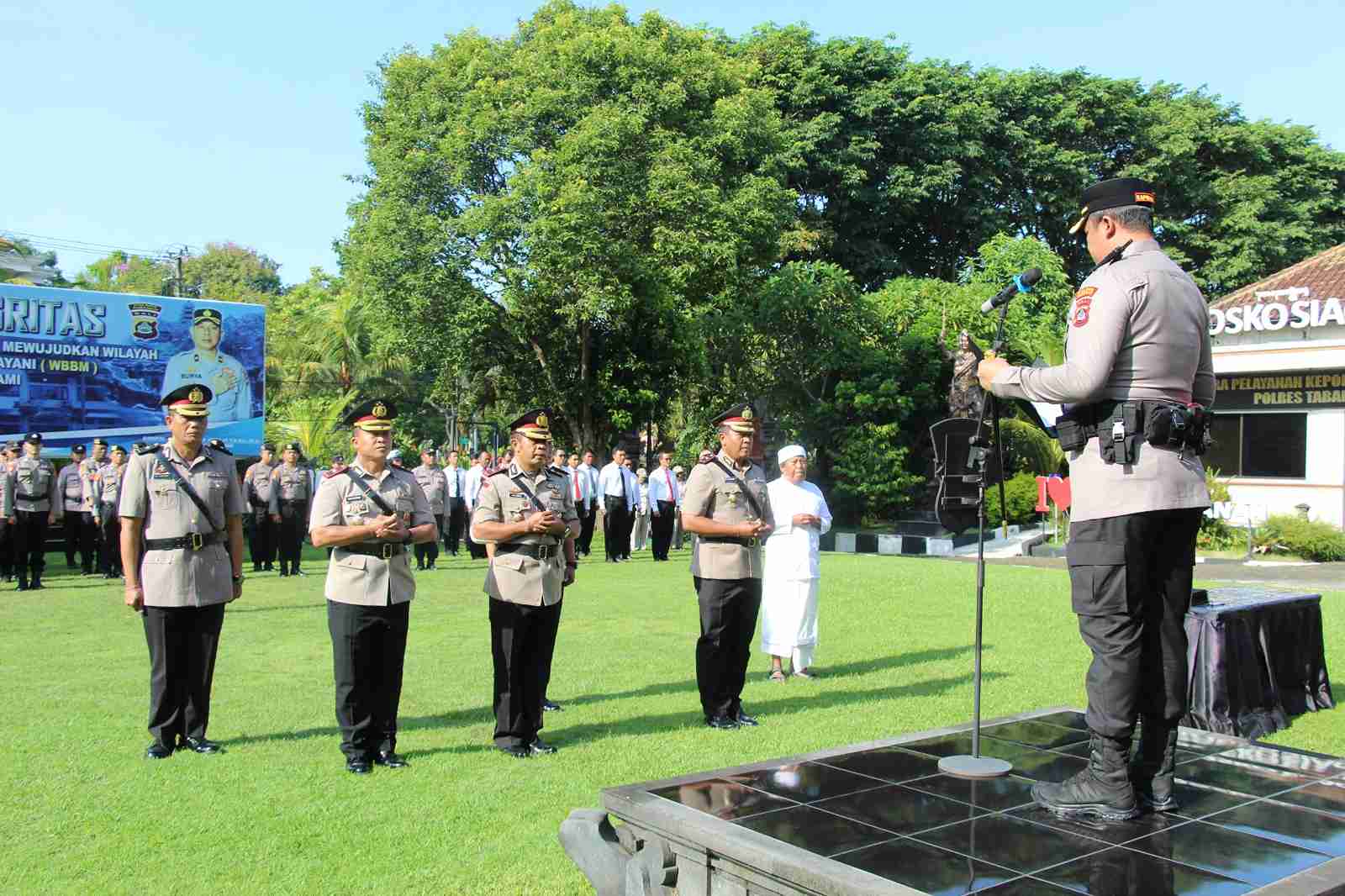 Kegiatan yang dimulai pukul 08.30 Wita hingga 09.15 Wita ini dihadiri Wakapolres Tabanan Kompol I Gede Made Surya Atmaja P., S.Sos., M.H., para Pejabat Utama (PJU) Polres Tabanan, seluruh Kapolsek jajaran, perwira, bintara, ASN Polres Tabanan, serta Wakil Ketua Bhayangkari Cabang Tabanan bersama pengurus dan anggota.