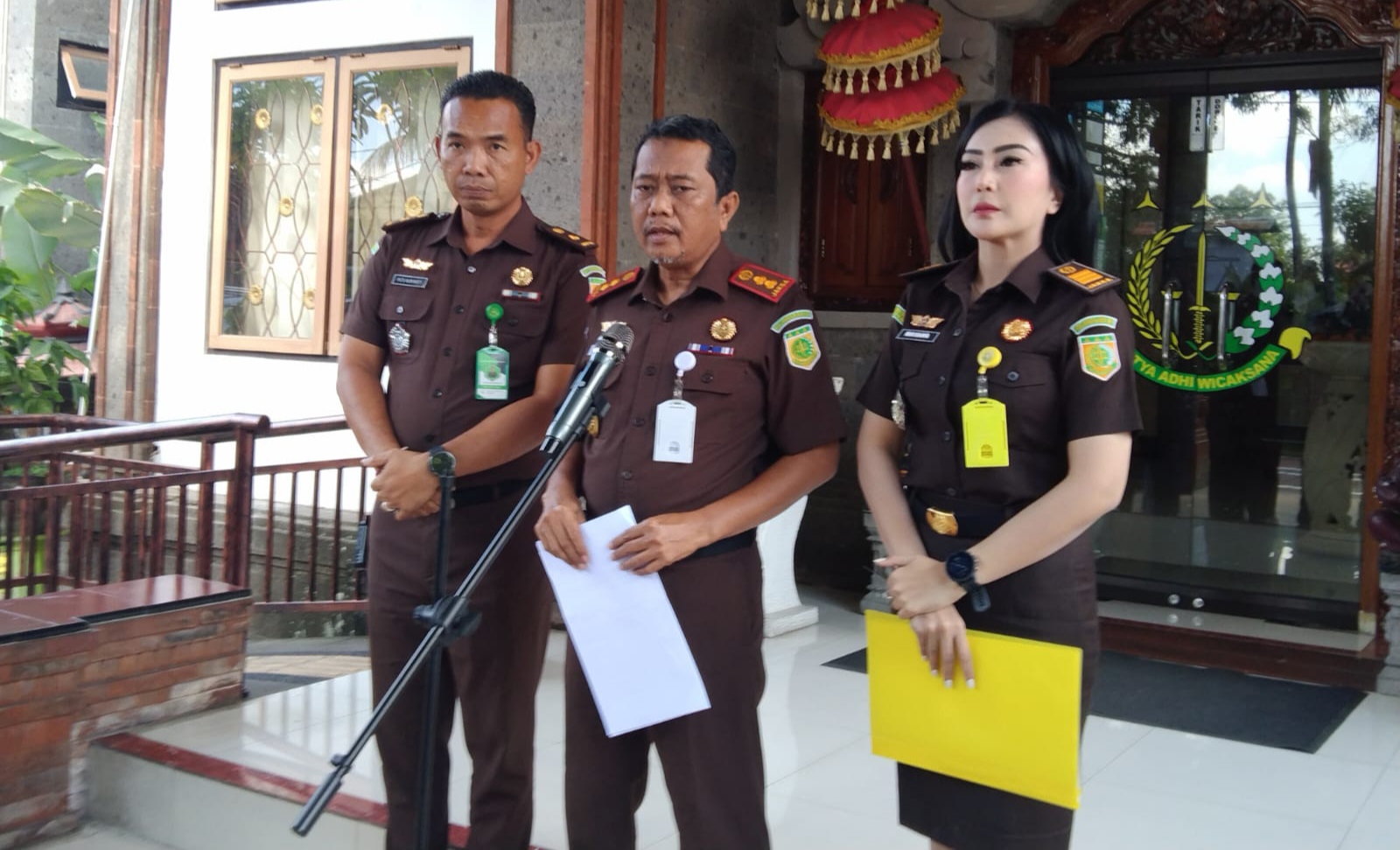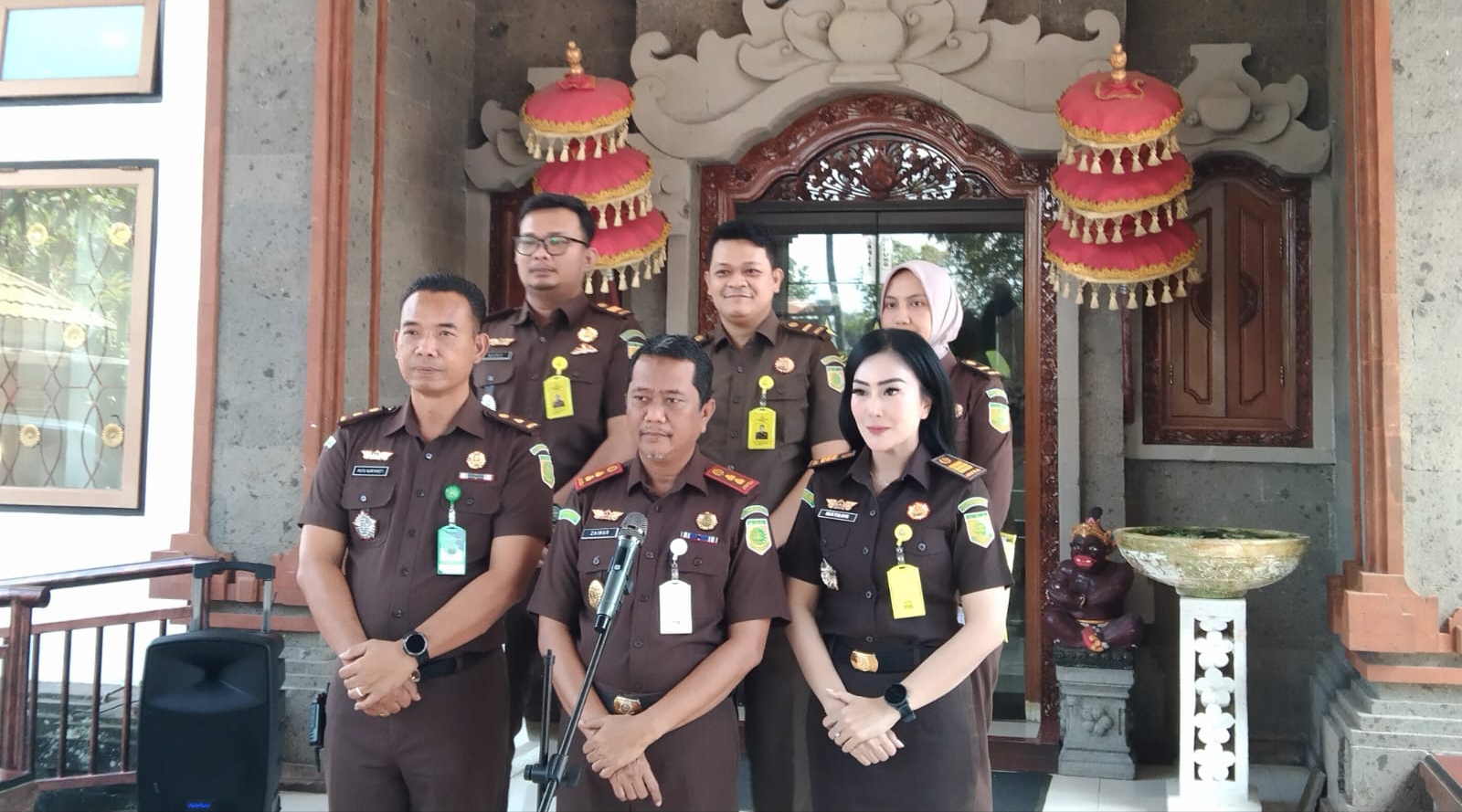 Kajari Tabanan, Zainur Arifin Syah, didampingi Kasi Perdata dan Tata Usaha Negara (Datun) Mayang Tari Parangin Angin, serta Kasi Intel Putu Nuryanto, menjelaskan pembubaran tersebut di Kantor Kejari Tabanan, Senin (22/9/2025).
