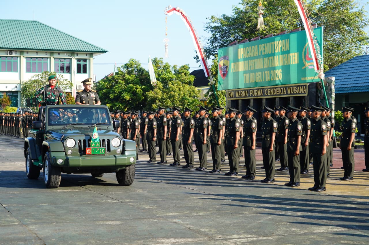 TABANAN, Breaking-news.co.id | Kodam IX/Udayana kembali menunjukkan komitmennya dalam mencetak prajurit profesional melalui pelantikan 137 Bintara Infanteri guna memperkuat kesiapan operasional satuan. Panglima Kodam IX/Udayana Mayjen TNI Piek Budyakto memimpin langsung upacara Penutupan Pendidikan Pertama Bintara (Dikmaba) Infanteri TNI AD Gelombang I Tahun Anggaran 2026 di Lapangan Wira Yudha Bhakti Rindam IX/Udayana, Jalan Piere Tendean No. 1, Tabanan, Jumat (24/4).