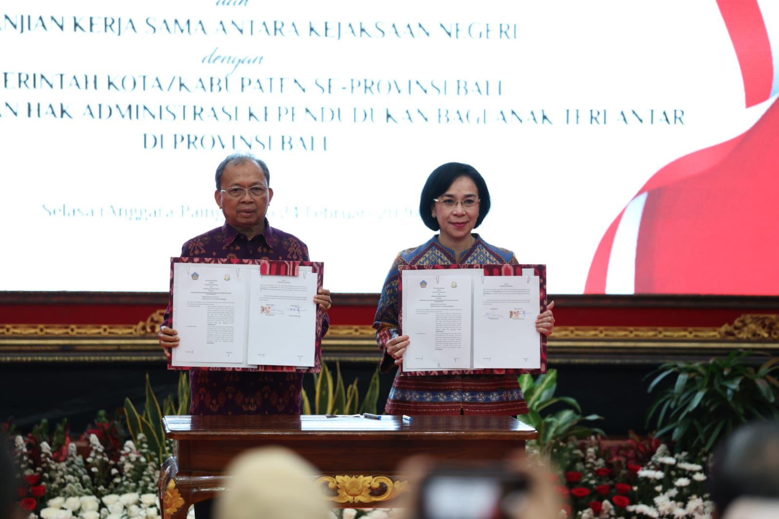 DENPASAR, Breaking-news.co.id | Gubernur Bali Wayan Koster mendukung penuh inisiatif Kejaksaan Tinggi Bali dalam pemenuhan hak administrasi kependudukan bagi anak terlantar. Dukungan itu disampaikan Gubernur Koster dalam sambutan pada acara Penandatanganan Nota Kesepahaman (MoU) dan Perjanjian Kerja Sama (PKS) Kejaksaan Tinggi Bali dengan Pemprov Bali dan Pemerintah Kabupaten/Kota Tentang Pemenuhan Hak Administrasi Kependudukan Bagi Anak Terlantar yang berlangsung di Ruang Wiswa Sabha Utama Kantor Gubernur Bali, Selasa (24/2/2026).