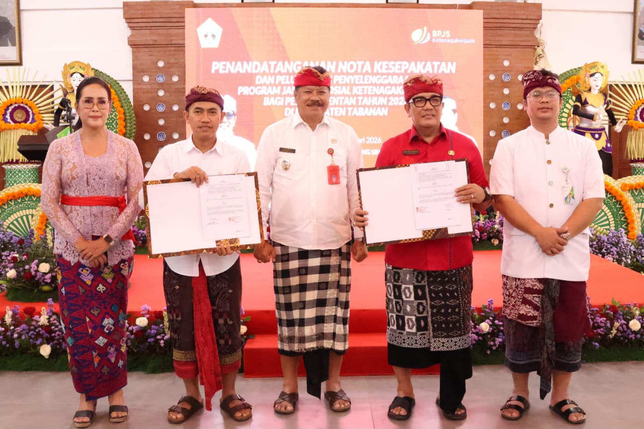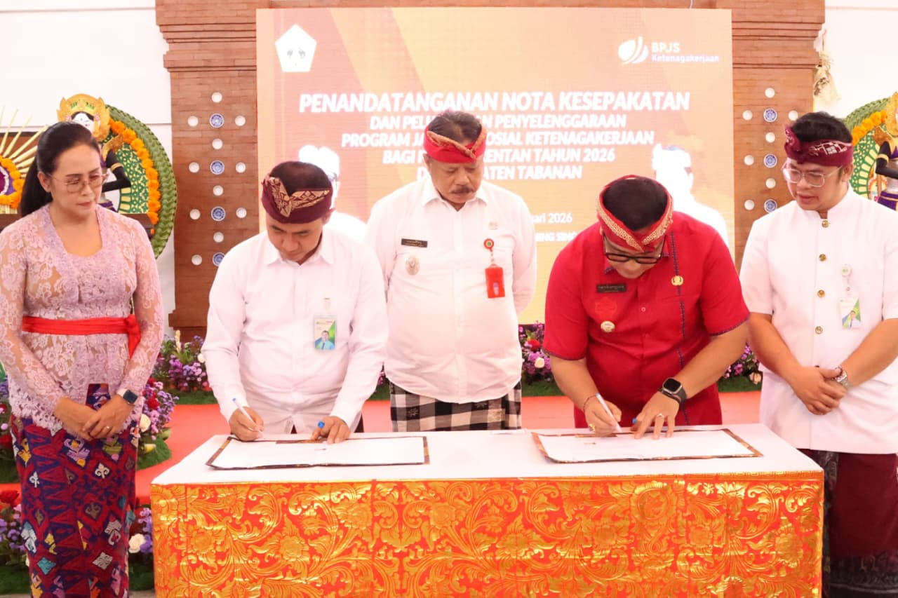 Peluncuran program tersebut ditandai dengan penandatanganan nota kesepakatan antara Bupati Tabanan Dr. I Komang Gede Sanjaya, S.E., M.M. dengan Perwakilan Kepala BPJS Ketenagakerjaan Wilayah Bali–Nusa Tenggara–Papua, yang berlangsung di Graha Yadnya Sanjayaning Singasana, Jumat (30/1).