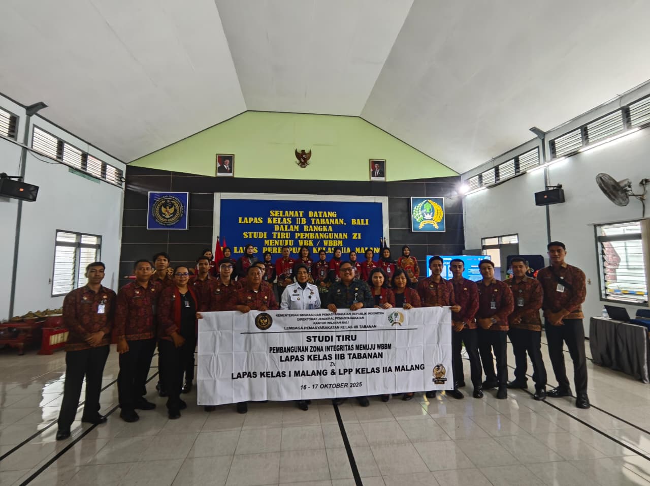TABANAN, Breaking-news.co.id | Dalam rangka Pembangunan Zona Integritas (ZI) menuju Wilayah Birokrasi Bersih dan Melayani (WBBM), Lembaga Pemasyarakatan (Lapas) Kelas IIB Tabanan melaksanakan kegiatan studi tiru ke Lapas Kelas I Malang dan Lembaga Pemasyarakatan Perempuan (LPP) Kelas IIA Malang, Selasa (21/10).