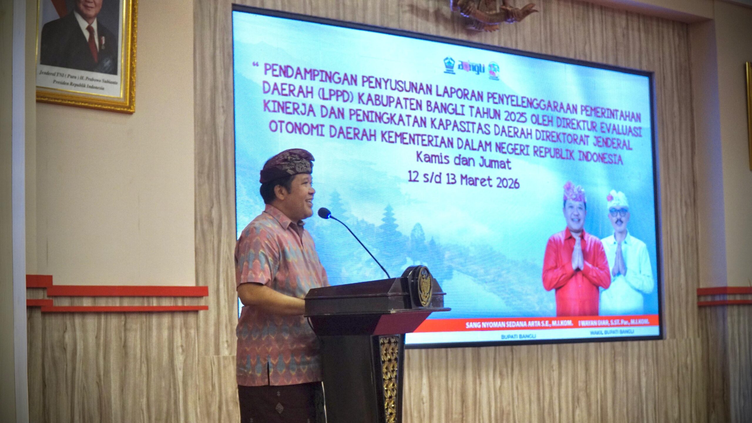 BANGLI, Breaking-news.co.id | Pemerintah Kabupaten Bangli menunjukkan komitmen kuat dalam menjaga kualitas tata kelola pemerintahan melalui penyelenggaraan kegiatan “Pendampingan Penyusunan Laporan Penyelenggaraan Pemerintahan Daerah (LPPD) Tahun 2025”. Acara yang berlangsung pada Kamis (12/3/2026) di Gedung Bukti Mukti Bhakti (BMB) Kantor Bupati Bangli ini dihadiri langsung oleh Bupati Bangli, Sang Nyoman Sedana Arta, didampingi Sekretaris Daerah, I Dewa Bagus Riana Putra.