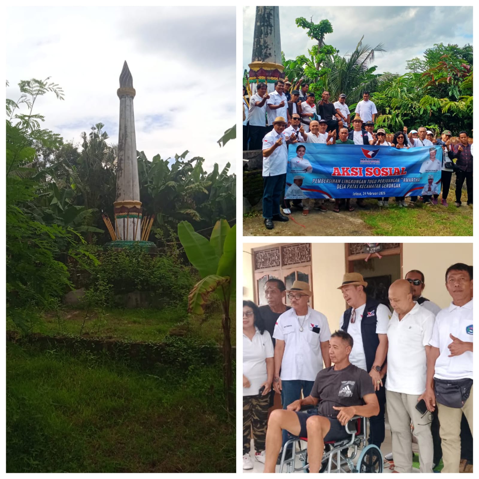 Aksi sosial berlanjut pengurus DPW dan DPD dan masyarakat desa patas melaksanakan aksi bersih bersih di Tugu Perjuangan Desa Patas Kecamatan Gerokgak.