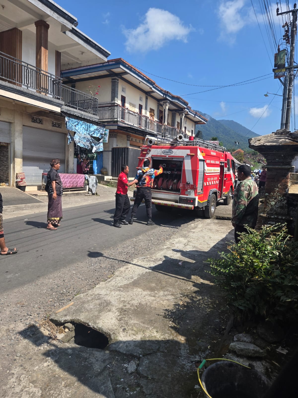 “Saya buru-buru berangkat ke upacara, jadi lupa matiin colokan TV. Ternyata dari situlah asal apinya. Saya baru tahu rumah kebakaran setelah ditelpon adik saya,” ujar I Wayan Suardana saat ditemui usai kejadian.