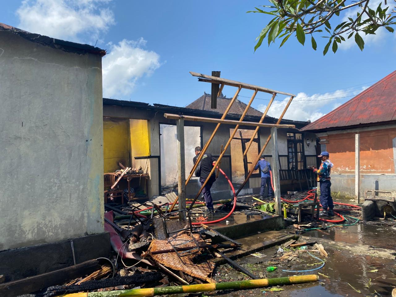 “Awalnya kami kira cuma bunyi petasan, tapi beberapa menit kemudian terdengar suara api seperti membakar kayu. Begitu kami lihat, api sudah besar di kamar tengah,” tutur I Wayan Wenten.