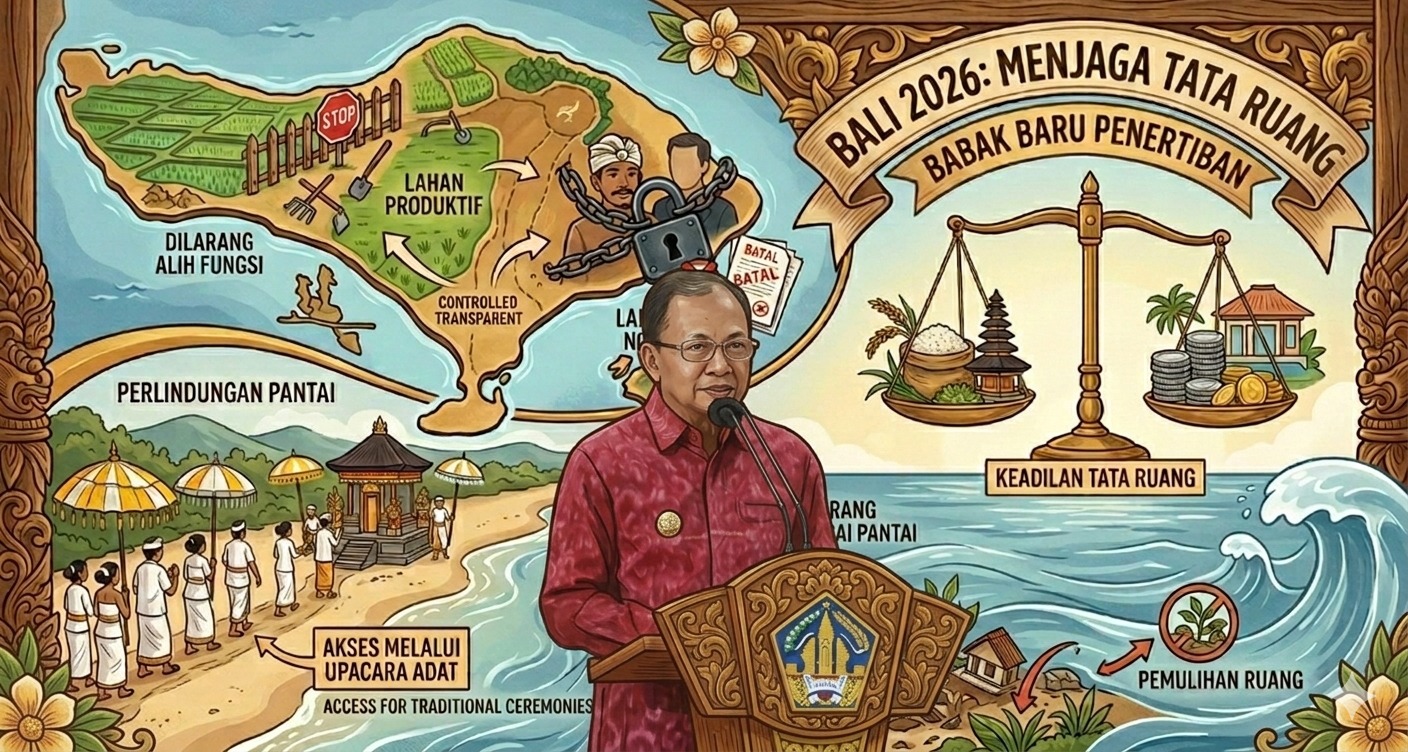 Bali tidak menutup pintu bagi investasi. Namun investasi yang menggerus lahan pangan, mempermainkan kepemilikan, dan menutup akses pantai bukan lagi bagian dari arah pembangunan. Perda telah lahir. Ruang kompromi semakin sempit. Yang tersisa adalah konsistensi penegakan.