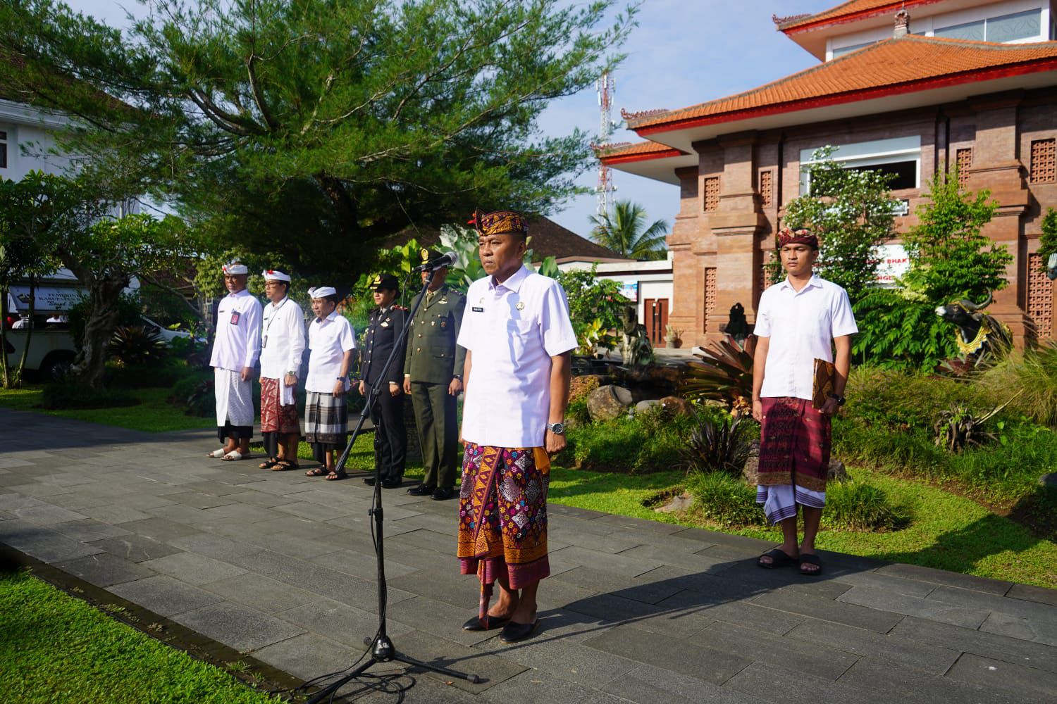Bertindak sebagai Inspektur Upacara, Sekda I Dewa Bagus Riana Putra membacakan amanat serentak Presiden Republik Indonesia di hadapan jajaran Forkopimda, Staf Ahli, Pimpinan Perangkat Daerah (PD), serta ratusan peserta yang terdiri dari unsur TNI, Polri, ASN, hingga organisasi kepemudaan.