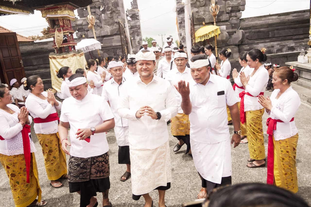 Wabup Bagus Alit Sucipta Hadiri Pujawali di Pura Desa Adat Tiyingan Pelaga Komitmen Lanjutkan Pembangunan Badung
